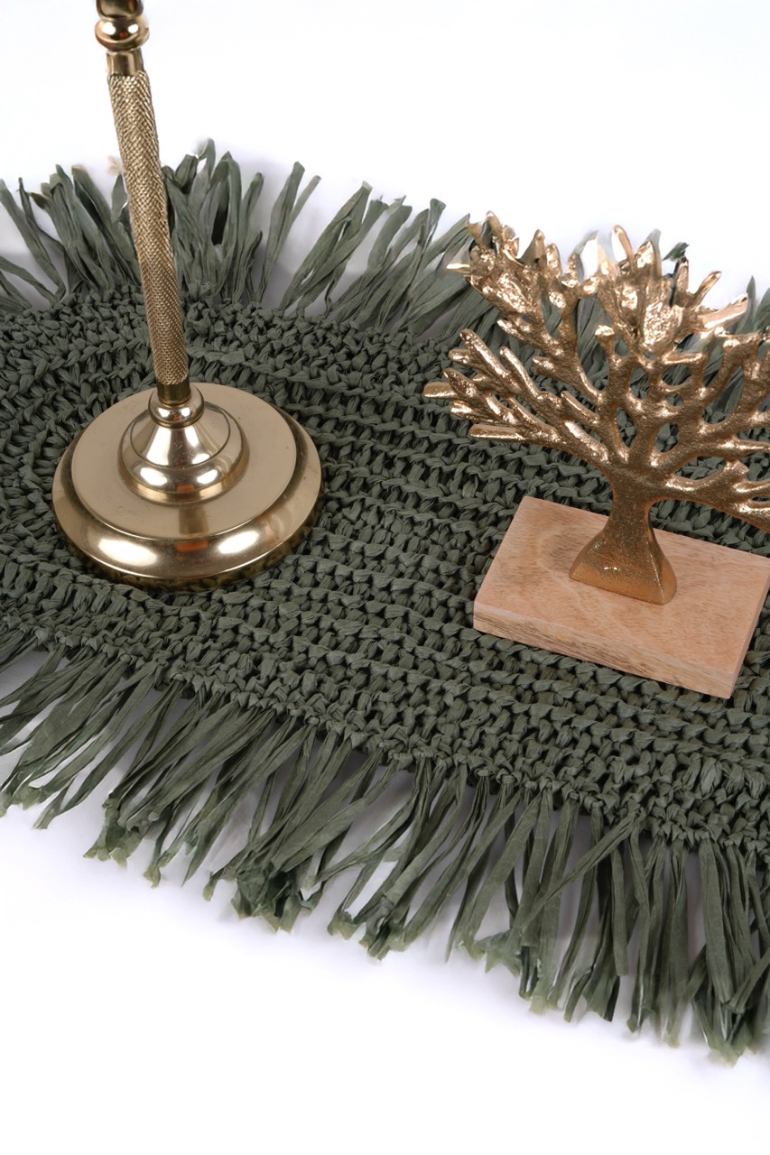 Sofralarınıza ve dekorasyonunuza şıklık katmak için tasarlanan el örgüsü oval runner, bohem stilin zarafetini yansıtır. Püskül detayları ve doğal iplik dokusu sayesinde masa üstü düzenlemelerinizi estetik bir şekilde tamamlar. Hem günlük kullanım hem de özel davetler için ideal bir dekoratif parçadır.